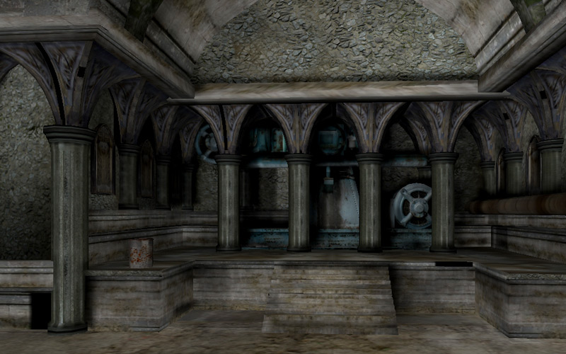 In de steampunk-series (game & code) hebben we ook een binnenruimte ontwikkeld, waarbij het thema is doorgezet in een ondergrondse zaal, deels een oud klooster, deels machineruimte. In de live game komt er uit de machines stoom en draaien de raderen, wat het geheel een meer dynamisch gevoel geeft. Het texture-werk in deze serie is geheel handgeschilderd en vervolgens op het 3D model aangebracht met Ultimate Unwrap. Game levels en code in opdracht van BHM Media.