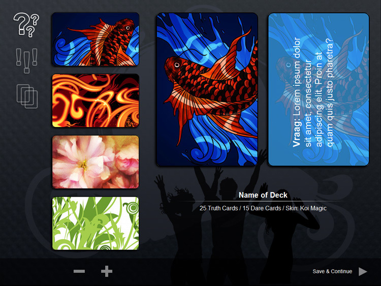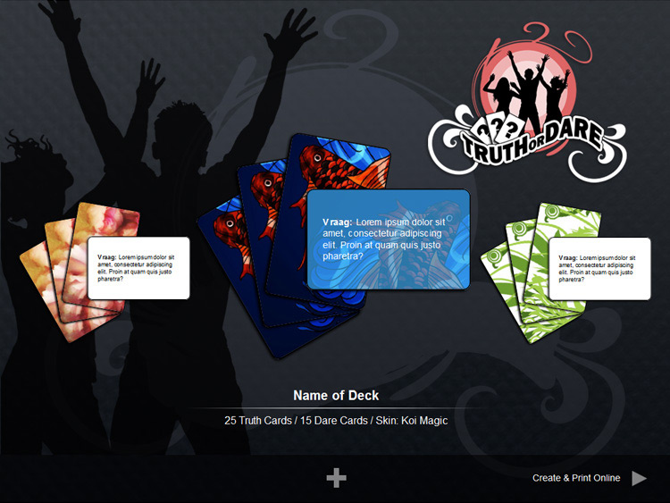 De iPad is prima te gebruiken als “party device”, het is handzaam, robuust en kan makkelijk gebruikt worden als vervanger van een bordspel of kaartspel. Met dit idee in ons achterhoofd zijn we begonnen met het ontwikkelen van een Truth or Dare kaartspel voor de iPad.